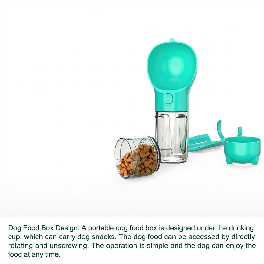 Stay prepared on walks and outings with a compact travel bottle that combines water storage, food space and waste bag convenience.